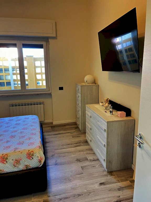 Appartamento a Marina di Carrara, al primo piano, completamente ristrutturato, composto da: Soggiorno con balcone, Cucina abitabile con terrazza pranzabile, Due camere matrimoniali e bagno con doccia.