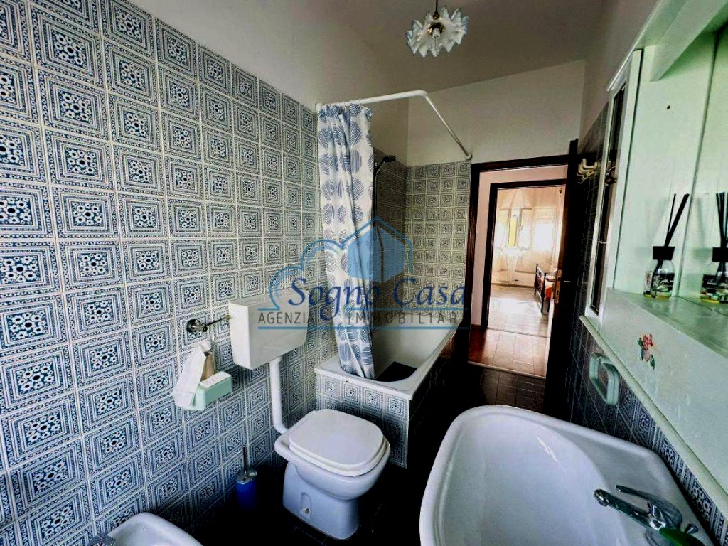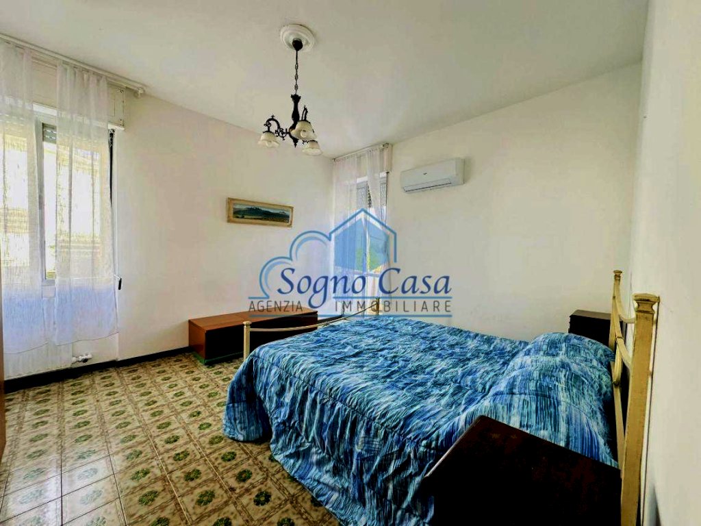 L'immobile si presenta in buone condizioni ed è così composto: ingresso su disimpegno, ampio e luminoso soggiorno con angolo cottura e accesso diretto a una terrazza abitabile con vista mare parziale, due camere matrimoniali (di cui una con terrazza privata), bagno finestrato con vasca.