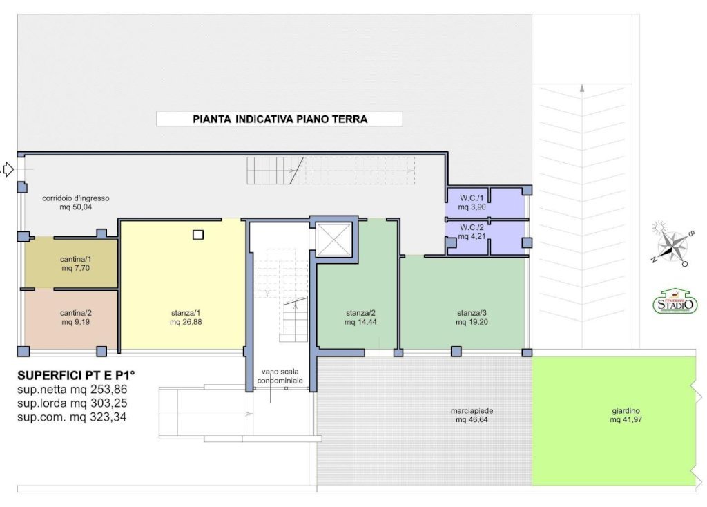IDEALE ANCHE PER PIU’ NUCLEI FAMILIARI o per chi desidera disporre, oltre all'abitazione, di un altro ampio spazio per realizzarvi il proprio ufficio e/o la propria area fitness: A circa 4 km dal mare, in gradevole contesto residenziale molto ben servito a due passi dal Viale XX Settembre ed in palazzo edificato negli anni ‘70, VENDO grande APPARTAMENTO di circa mq 323,34 lordi commerciali (circa mq 253,86 netti calpestabili) posto su 2 livelli (terra e primo) e composto da un grande disimpegno d’ingresso, 2 cantine, 4 stanze, 2 bagni, scale interne conducenti al piano superiore e piccolo giardino a piano terra, arrivo delle scale in ampio corridoio, 5 camere, due bagni e ampio balcone servente due lati dell’alloggio a piano primo. L’immobile, subito abitabile ma da rimodernare è già servito da due ingressi separati e può essere facilmente suddiviso in 3/4 unità immobiliari assestanti (progetti visionabili in agenzia). Riscaldamento autonomo, modeste spese condominiali, ascensore.