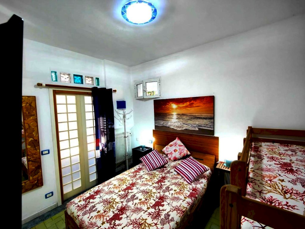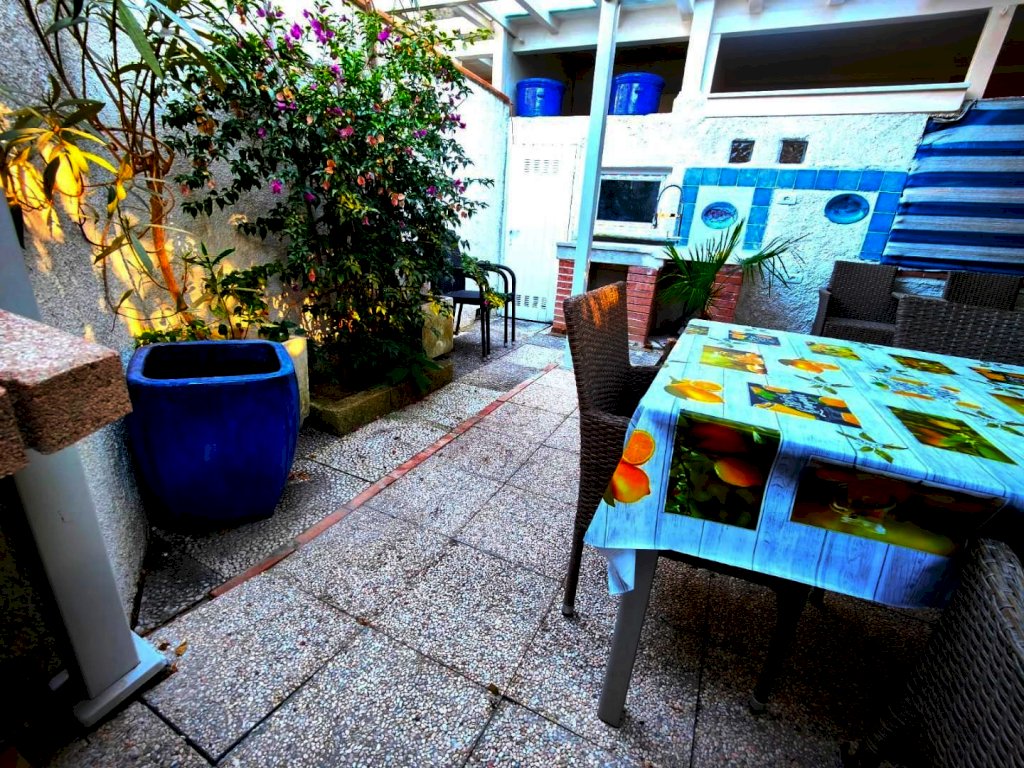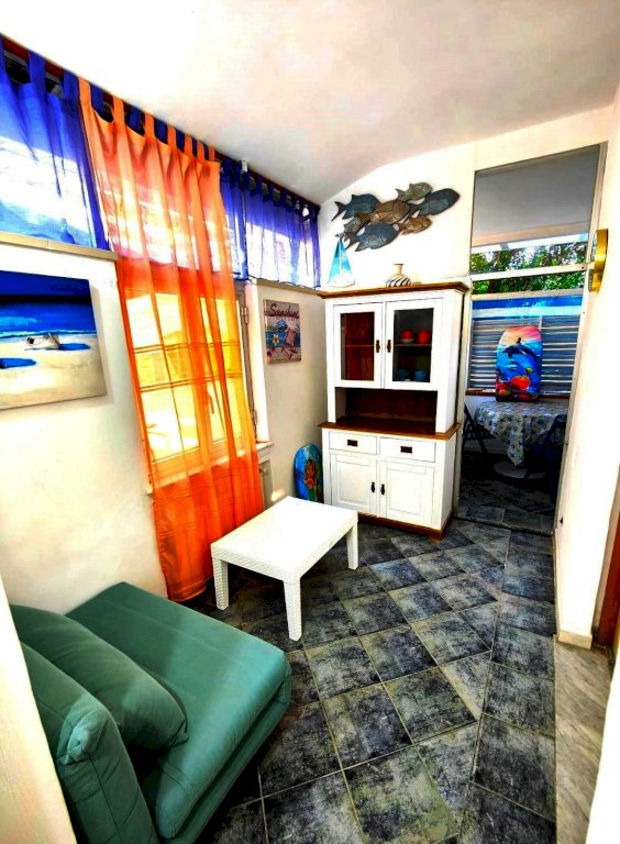 In zona tranquilla a pochi passi dal mare e da tutti i principali servizi si propone appartamento di recente ristrutturazione in tranquillo contesto residenziale (senza spese condominiali), sito in strada privata con parcheggio fronte casa. La proprietà è composta da un appartamento arredato (fino a 7 posti letto) con ampia corte attrezzata. Nel dettaglio il trilocale è così composto: ingresso con disimpegno, bagno con doccia, cucinotto, salotto (con divano letto), camera (letto matrimoniale e letto a castello), veranda arredata con divano letto matrimoniale, e ampia corte attrezzata di 65 mq con ripostiglio. La corte con ingresso indipendente per biciclette, è attrezzata con barbecue in muratura, lavabo e cucina in muratura, ripostiglio, fontana, piantumazione ad alto fusto, pergolato e alte mura per massima privacy e sicurezza. A due passi servizi quali piscina, ristorante-pizzeria, palestra, campi da padel, spiagge attrezzate e spiaggia libera. Ottima soluzione a uso investimento per affitto estivo e come casa vacanze.