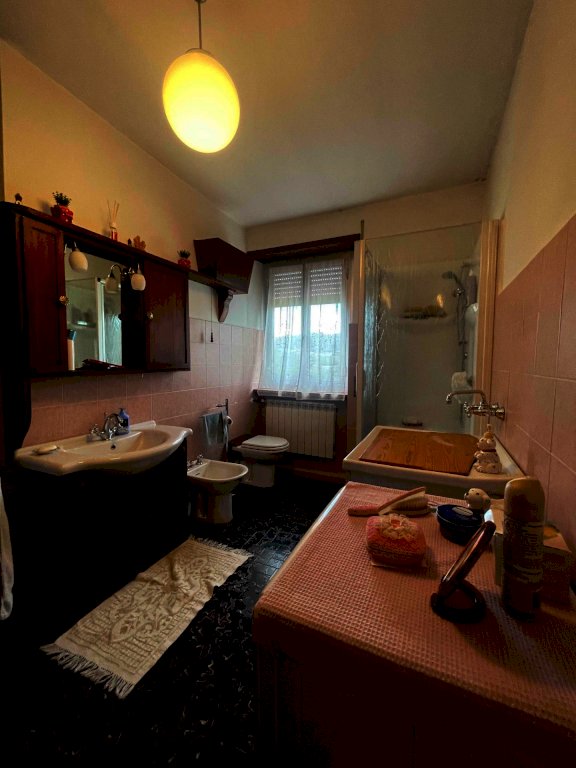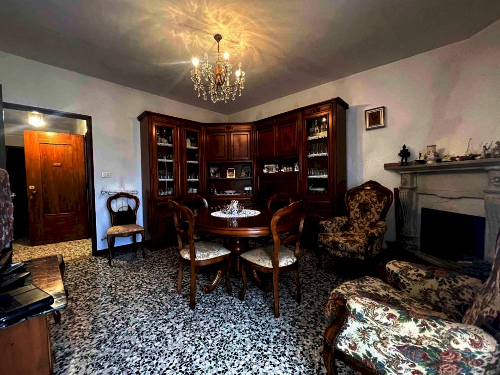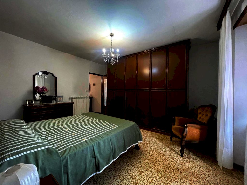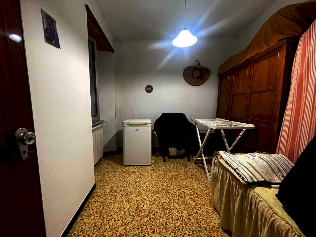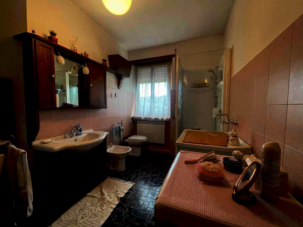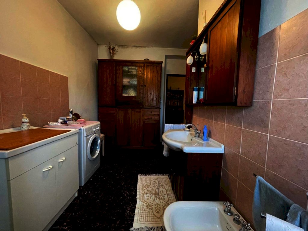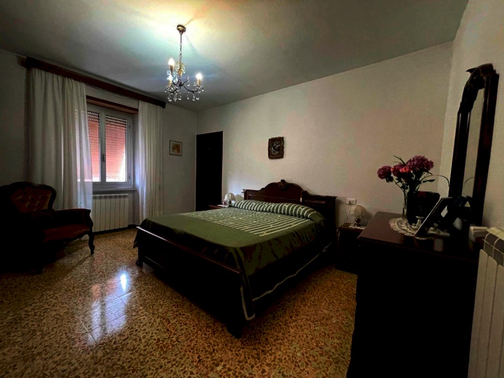 La proprietà è raggiungibile con l’auto, con accesso privato e protetto da un cancello ed è composta da un ampio appartamento di mq. 147 al secondo e ultimo piano di una palazzina di solo tre unità immobiliari composto da ampio disimpegno d'ingresso, cucina abitabile con dispensa dotata di finestra, salone con camino e balcone panoramico con accesso diretto sia dalla cucina che dal salone, stanza da bagno, ampissima camera matrimoniale, altra camera e camera singola. Riscaldamento autonomo. Al piano superiore troviamo un lastrico solare praticabile di mq. 36 con vari ripostigli nel sottotetto. Le finiture sono degli anni' 80 ottimamente tenute: pavimenti in graniglia e infissi di legno. Al piano semi-interrato un’ampia cantina/taverna di mq. 77 con forno a legna e bagno di servizio. All’esterno una secondo deposito attrezzi di mq. 10 e un terzo magazzino di mq. 42. La superficie totale dei terreni è di mq. 956.