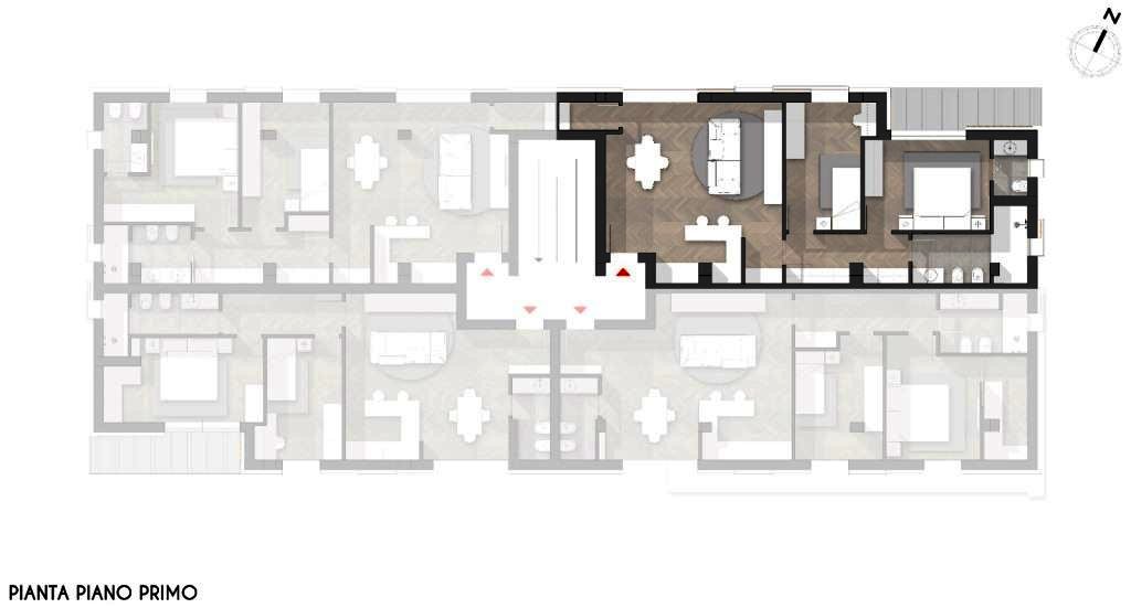 Il secondo appartamento, che proponiamo in vendita, di circa 85 mq, è sito al piano primo, ingresso indipendente e libero su 2 lati, suddiviso in: ingresso-soggiorno con angolo cottura, disimpegno, 2 camere e 2 bagni (di cui uno in camera), balcone, posto auto scoperto.