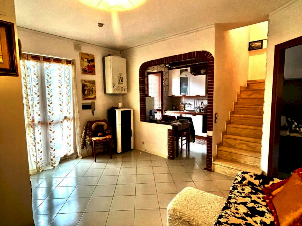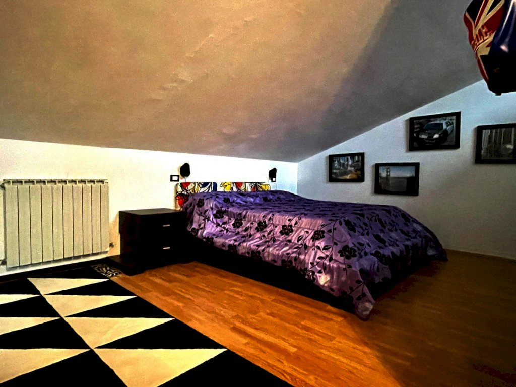 Appartamento al primo piano disposto su due livelli in piccolo condominio. Si compone di soggiorno con cucina semiabitabile e terrazza, disimpegno, camera matrimoniale con terrazza, bagno con doccia e finestra. Al piano superiore mansardato un grande open space con lucernario e terrazza, un secondo bagno. Garage al piano terra molto grande finestrato. Impianto di riscaldamento autonomo a metano. Stufa apellet nella zona giorno. Libero da subito. Trattabile. Classe energetica: G - Rif. GA339. Per informazioni contattare il 3398315906