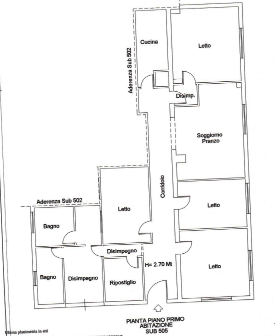 Appartamento posto al piano primo, composto da soggiorno-pranzo, quattro camere da letto, cucina, due bagni, disimpegni e corridoio.