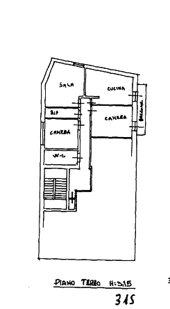 L'appartamento è posto al terzo piano di un condominio, composto da un disimpegno all'ingresso e un lungo corridoio che conduce a due camere da letto (una delle quali con finestra a nastro), un bagno cieco, una sala e una cucina con accesso diretto all'unico terrazzo affacciato su via Sorgenti, oltre ad una porzione di sottotetto al quarto piano.