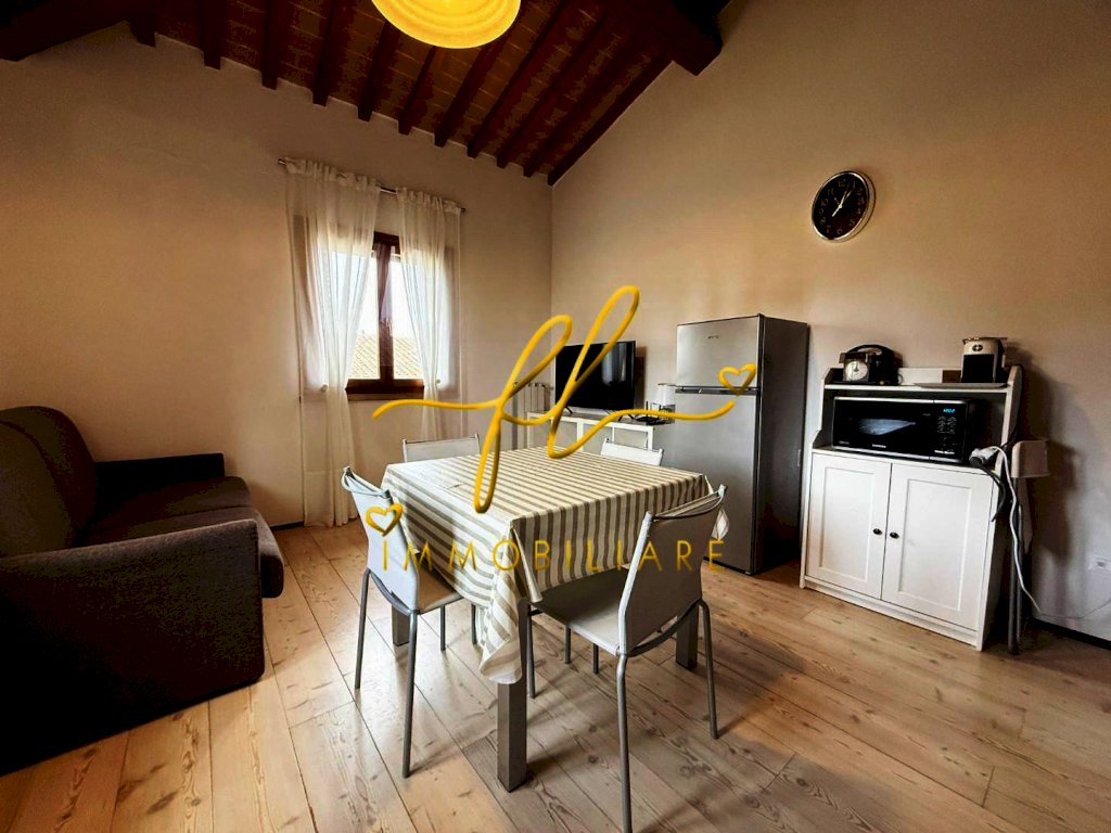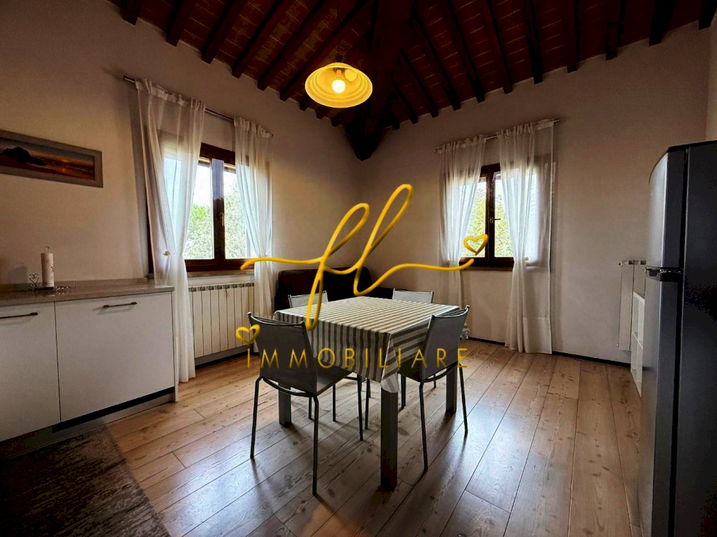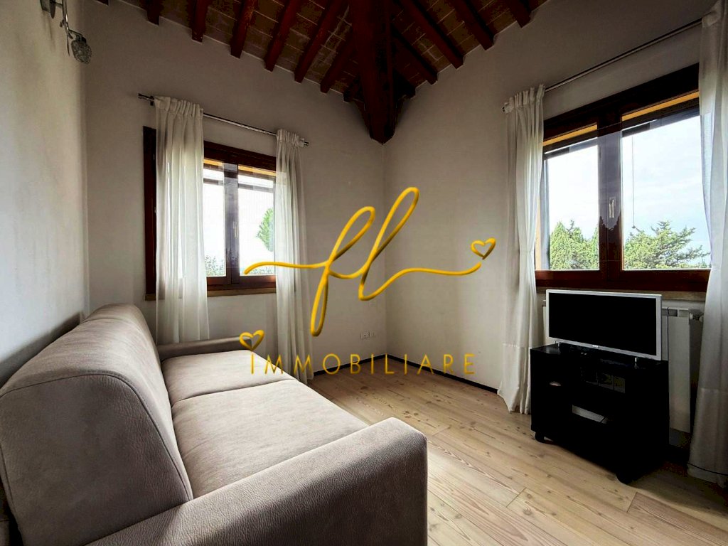 L'appartamento si trova al secondo piano fornito di ascensore all'interno di un casolare in tipico stile Toscano curato nei minimi dettagli si compone di: