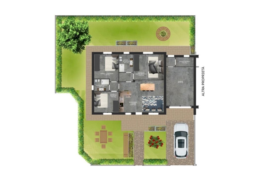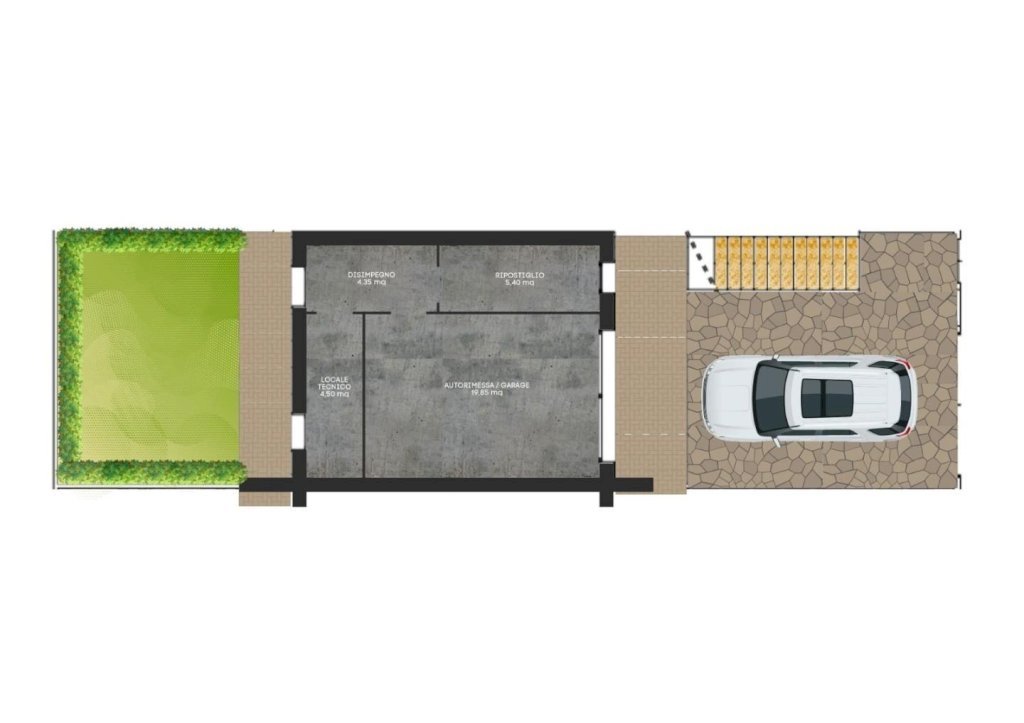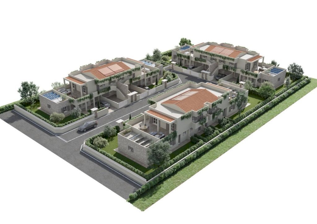 Tutti gli appartamenti hanno ingresso indipendente, disposti su unico livello, al piano terreno con ampio giardino, oppure al piano primo con terrazza di 60 mq.