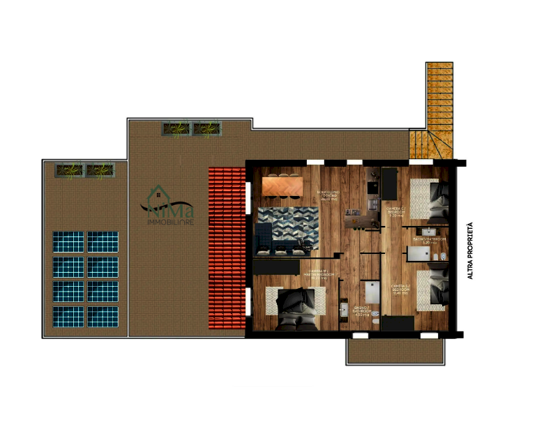 L'appartamento di 90 mq presenta una zona luminosa zona living con angolo cottura, due moderni bagni e nella zona notte tre camere di cui un' ampia camera matrimoniale e due camere singole.