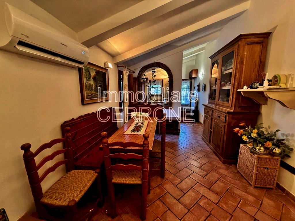 La zona giorno con angolo cottura, intima e conviviale, è arricchita da un suggestivo camino, ideale per rendere speciali le serate in ogni stagione, mentre la sala regala un piacevole affaccio sul verde, capace di trasmettere immediatamente una sensazione di pace.