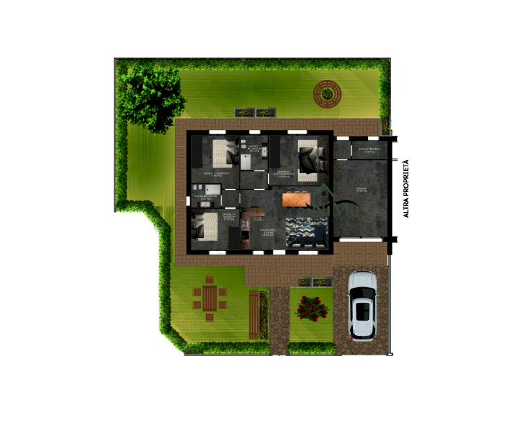 Completa il tutto garage con locale tecnico di 29 mq e giardino privato indipendente di 100 mq, ideale per godersi le giornate estive in relax.
