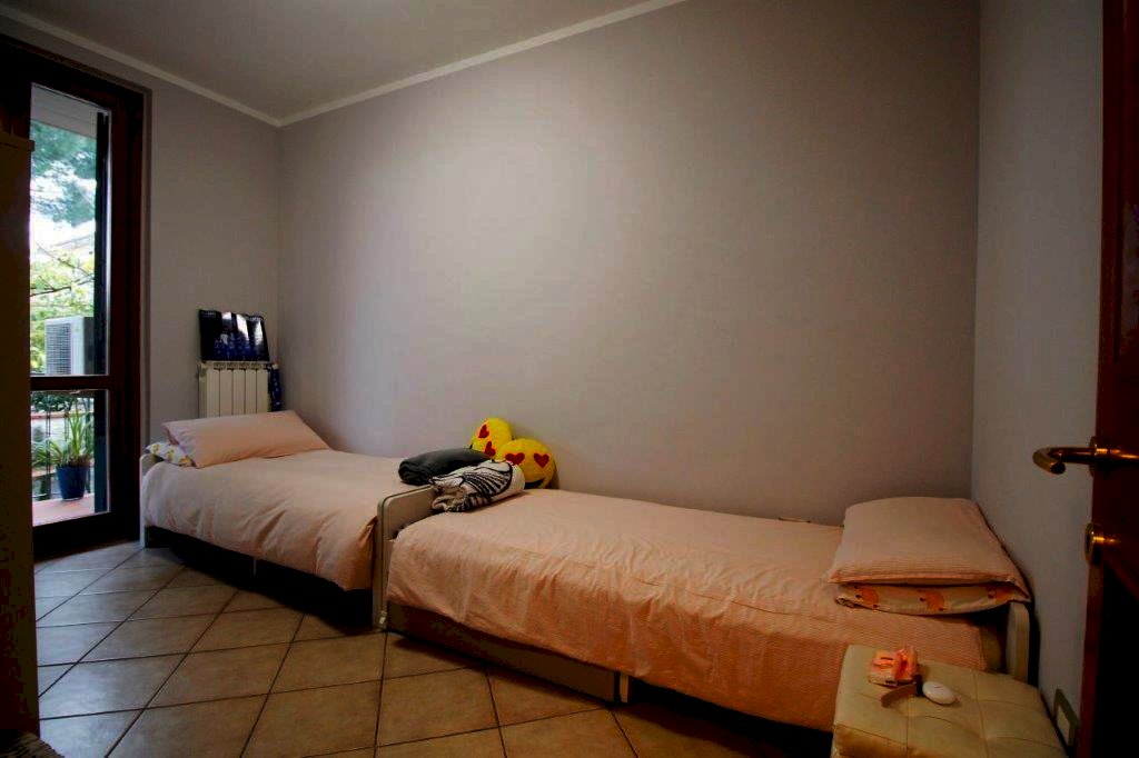 L'appartamento è composto da ingresso indipendente in ampio soggiorno con cucinotto, bagno, ripostiglio, 2 camere oltre terrazza e giardino esclusivi.