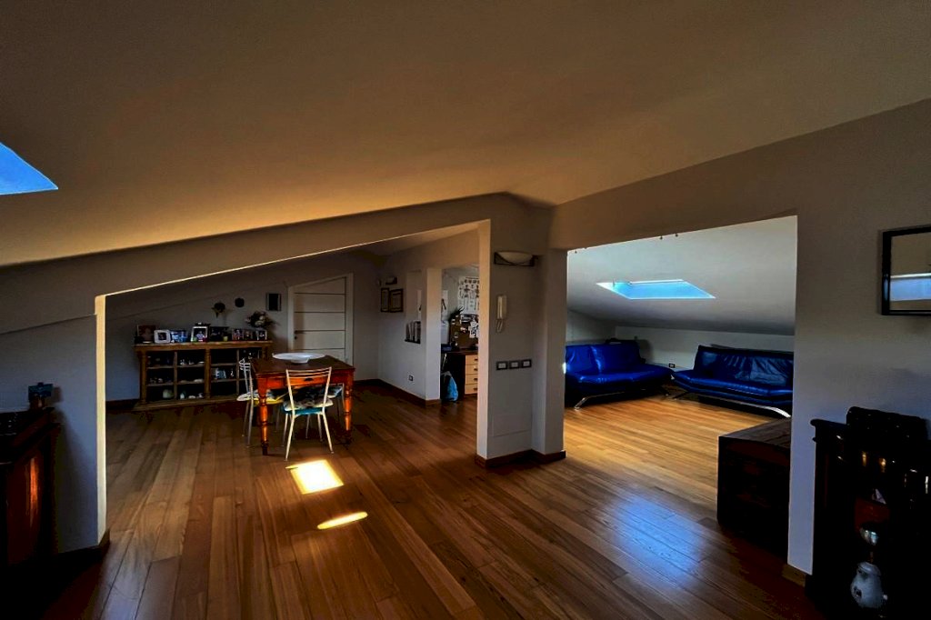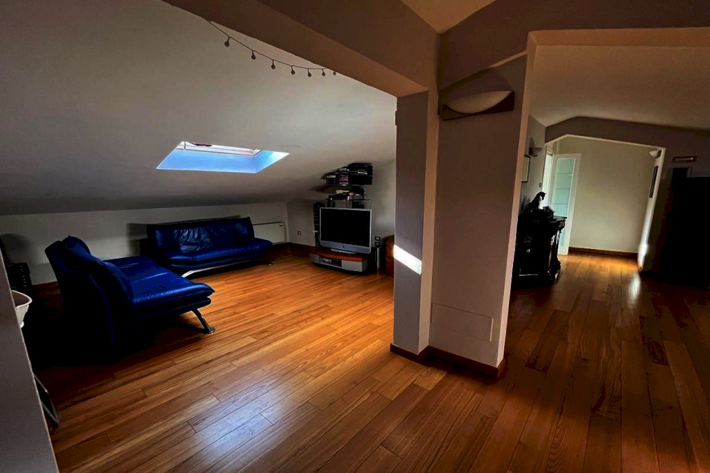 L’ appartamento è finemente ristrutturato di ca. mq. 100 è posto al 2° piano ed è composto da ingresso, cucina abitabile con terrazza, soggiorno con camino , bagno e due camere, al piano soffitta, collegata da una comoda scala interna, si accede al piano soffitta, completamente ristrutturato di ca. mq. 120, composta da 5 vani e un bagno, tutti con lucernario, attualmente è utilizzata in parte come zona giorno ed in parte come ulteriore zona notte. Immobile in ottime condizioni e buone rifiniture.