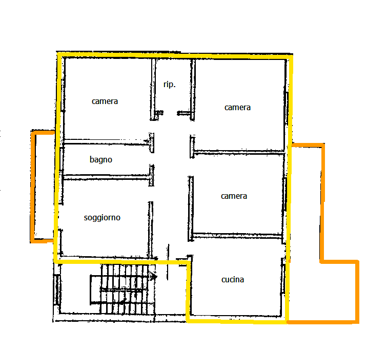 L'appartamento occupa tutto il 2°e ultimo piano, in un piccolo condominio di soli due appartamenti, ed è composto da un ampio ingresso, cucina, con cucinotto, soggiorno, tre camere matrimoniali, ampio ripostiglio, bagno, un balcone ed una terrazza abitabile, con accesso dalla cucina, oltre ad un piccolo vano al piano terra, adatto, per ripostiglio, deposito biciclette, o altro. Soffitta praticabile dove è possibile ricavare un ulteriore spazio abitativo. NO SPESE CONDOMINIALI. L'appartamento è libero.