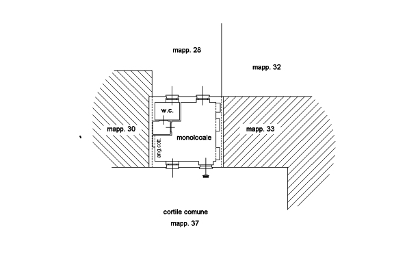 L'immobile è posto al piano terra con accesso da corte comune è composto da soggiorno con angolo cottura, antibagno e bagno con annesso cortiletto sul retro a uso esclusivo.