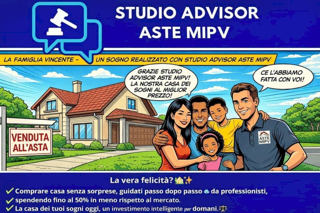 Questo annuncio è stato redatto da Studio Advisor Aste MiPv sulla base della documentazione ufficiale di vendita. Le informazioni qui riportate non sostituiscono la pubblicità legale e potrebbero contenere imprecisioni o variazioni rispetto agli atti ufficiali. Studio Advisor Aste MiPv declina ogni responsabilità per errori, omissioni o modifiche intervenute successivamente alla pubblicazione.
