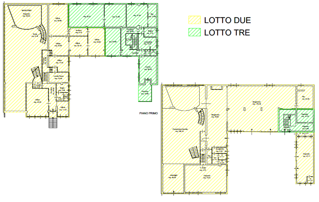 Queste due unità hanno ingresso comune e si completano tra loro. L'appartamento è composto da: ingresso, cucina, due bagni, lavanderia, ripostiglio, soggiorno, tinello e due camere. ci sono due accessi principali sempre dal cortile, e precisamente con una scala si accede ai locali, sia dell'esposizione, sia ai locali degli uffici; dal piano terra tramite due portoni si accede all'ampio magazzino direttamente comunicante con i locali esposizione.