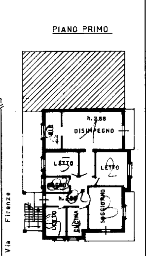 - un appartamento di 7 vani e di 179,00 mq, sito al piano primo, con ingresso, soggiorno, cucina, due camere da letto, un bagno, un disimpegno, un ampio locale pluriuso, lavanderia, due balconi.
