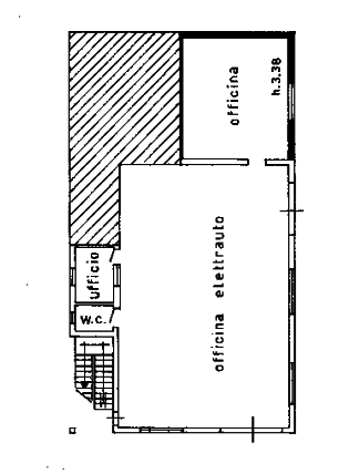 - un officina di 185,00 mq composto da un ampio vano, un vano retrostante ad uso magazzino/laboratorio, due uffici e due bagni.