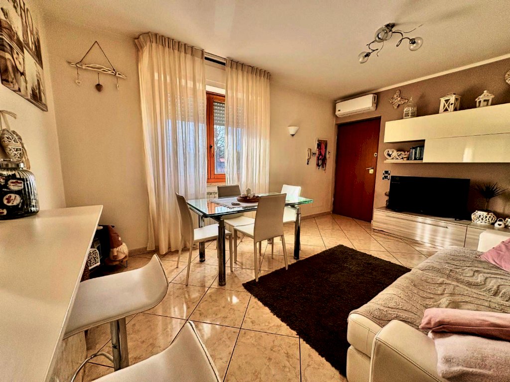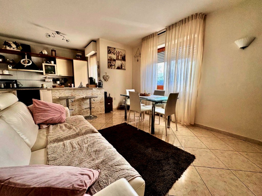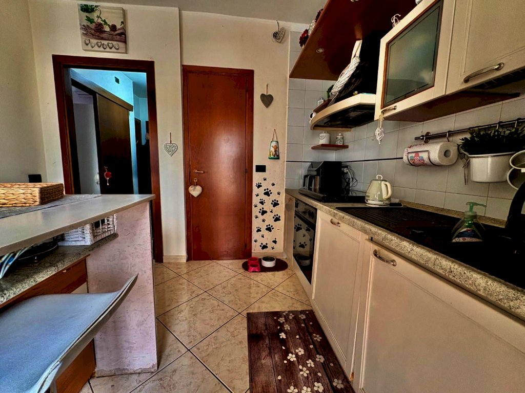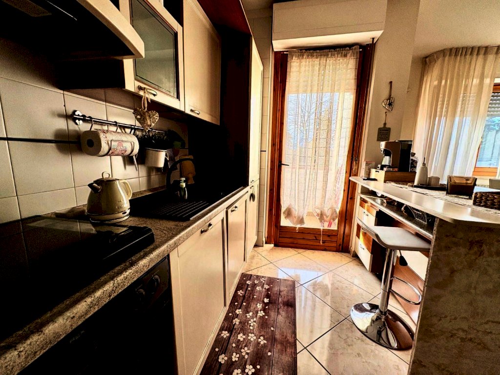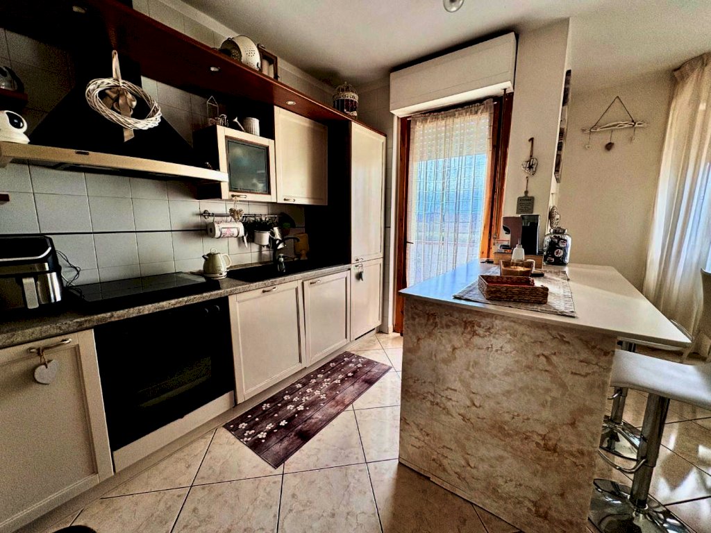 Appena varcata la soglia, ti accoglie un'ampia zona giorno molto luminosa, perfetta per momenti di convivialità e relax. La zona giorno è affiancata da un angolo cottura con penisola, ideale per preparare deliziosi piatti durante cene con amici e familiari. E per rendere l’atmosfera ancora più speciale, tramite una porta finestra potrai accedere a un incantevole terrazzo.