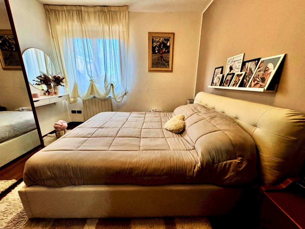 Un comodo disimpegno ti condurrà alla zona notte, composta da una camera matrimoniale, una camera singola e un bagno, tutti gli spazi sono pensati per garantire il massimo del comfort e della funzionalità. Ma non finisce qui! Grazie a una graziosa scala a chiocciola, potrai scendere al piano semi-interrato, dove troverai una grande cantina finestrata, un pratico ripostiglio e un'auto rimessa con accesso carrabile dalla corte condominiale.