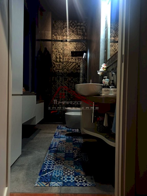 o Bagno Moderno e Rifinito: Servizio igienico completamente ristrutturato 3 anni fa dotato di finestra per un'ottima aerazione, con sanitari sospesi, rubinetteria di design, termoarredo, mattonelle di grande formato e ampia cabina doccia con piatto a pavimento sagomato su misura e anta scorrevole in cristallo.