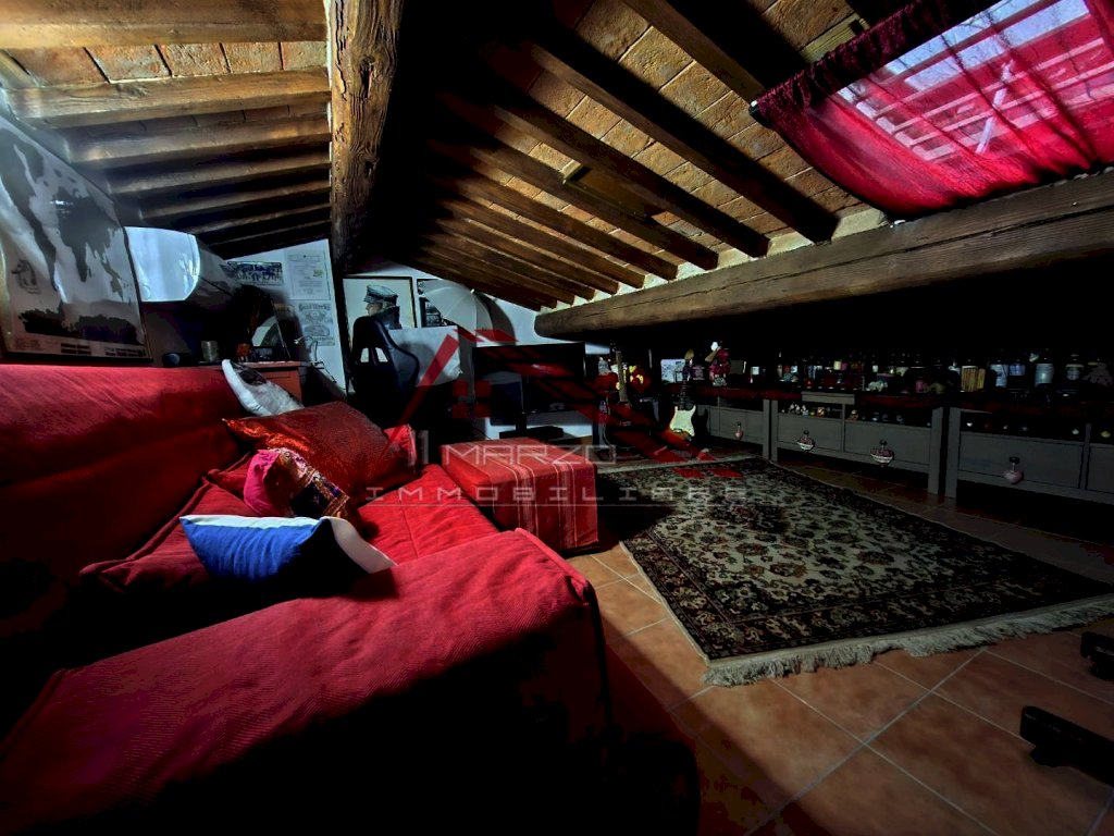 o Spazio Extra Versatile (Sottotetto): Una scala interna in legno conduce al sottotetto praticabile. L'intero vano scale e il sottotetto presentano mezzanine e travi a vista. Il sottotetto è suddiviso in due vani dotati di porte: un grande ripostiglio e una zona relax/studio/ospite con lucernario e pompa di calore.