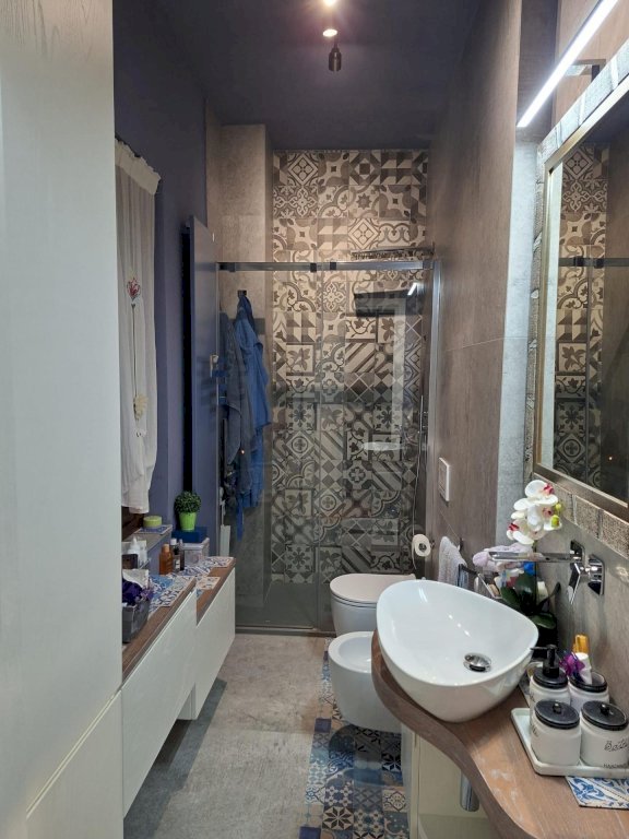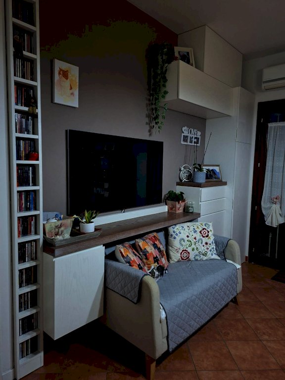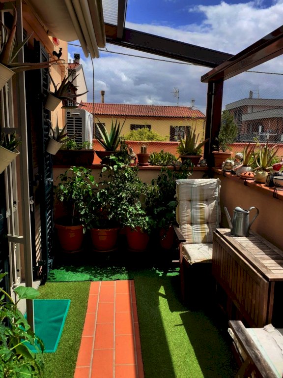 Bilocale al primo ed ultimo piano di palazzina completamente ristrutturata nel 2010. L'appartamento è molto luminoso e si compone di soggiorno con angolo cottura con accesso a splendida terrazzina di circa 10 mq accessoriata con pilozzo e pergola motorizzata, disimpegno dotato di comodo armadio a muro, camera matrimoniale ampia, bagno con finestra ristrutturato 3 anni fa, scala interna che consente l'accesso a due vani sottotetto, uno utilizzato come studio e uno come ripostiglio, il sottotetto ha splendide travi a vista. Posto auto di proprietà. Termoautonomo e climatizzato. L'impianto di riscaldamento è stato completamente rifatto tre anni fa. Infissi in pvc effetto legno e zanzariere. Nessuna spesa condominiale. 163.000€