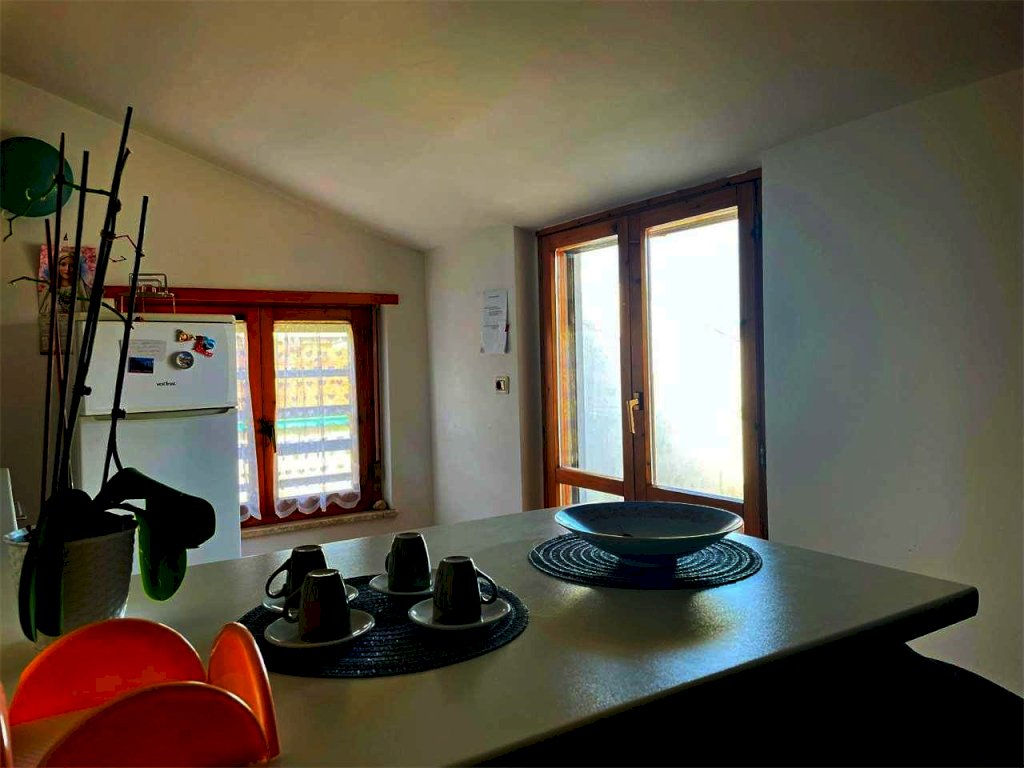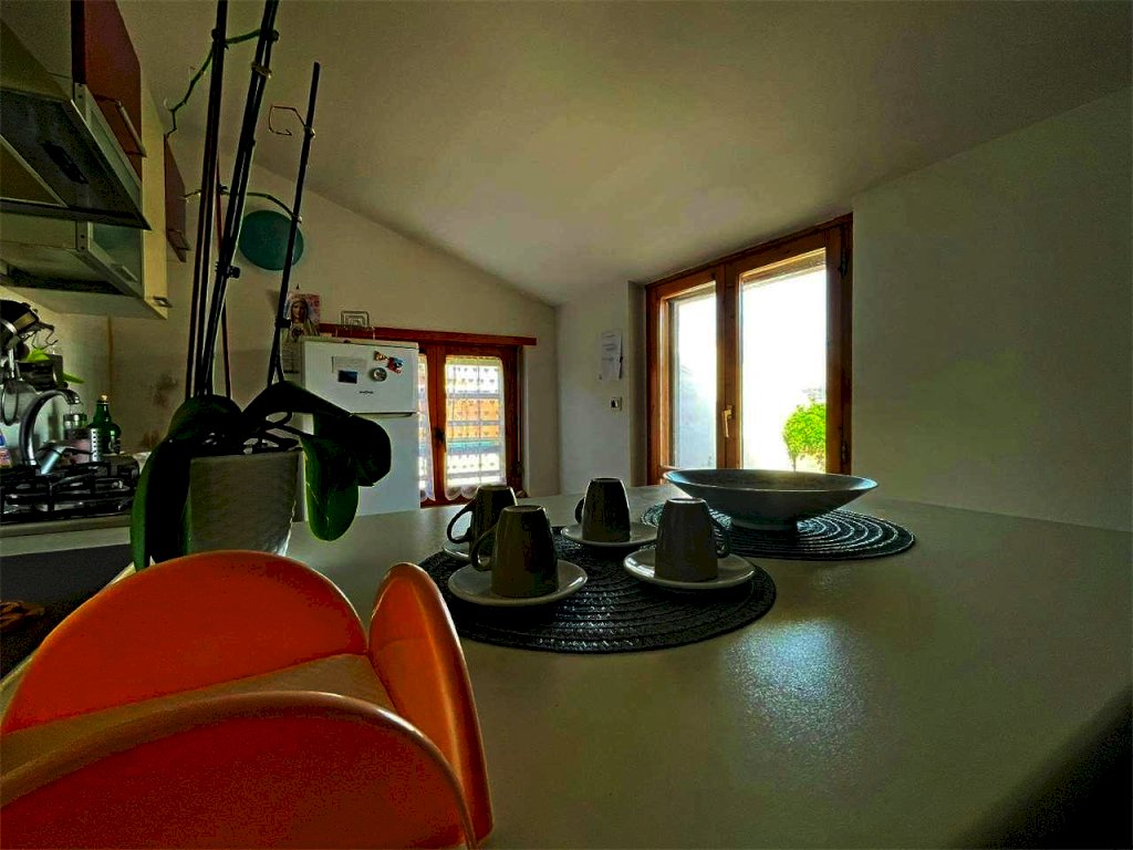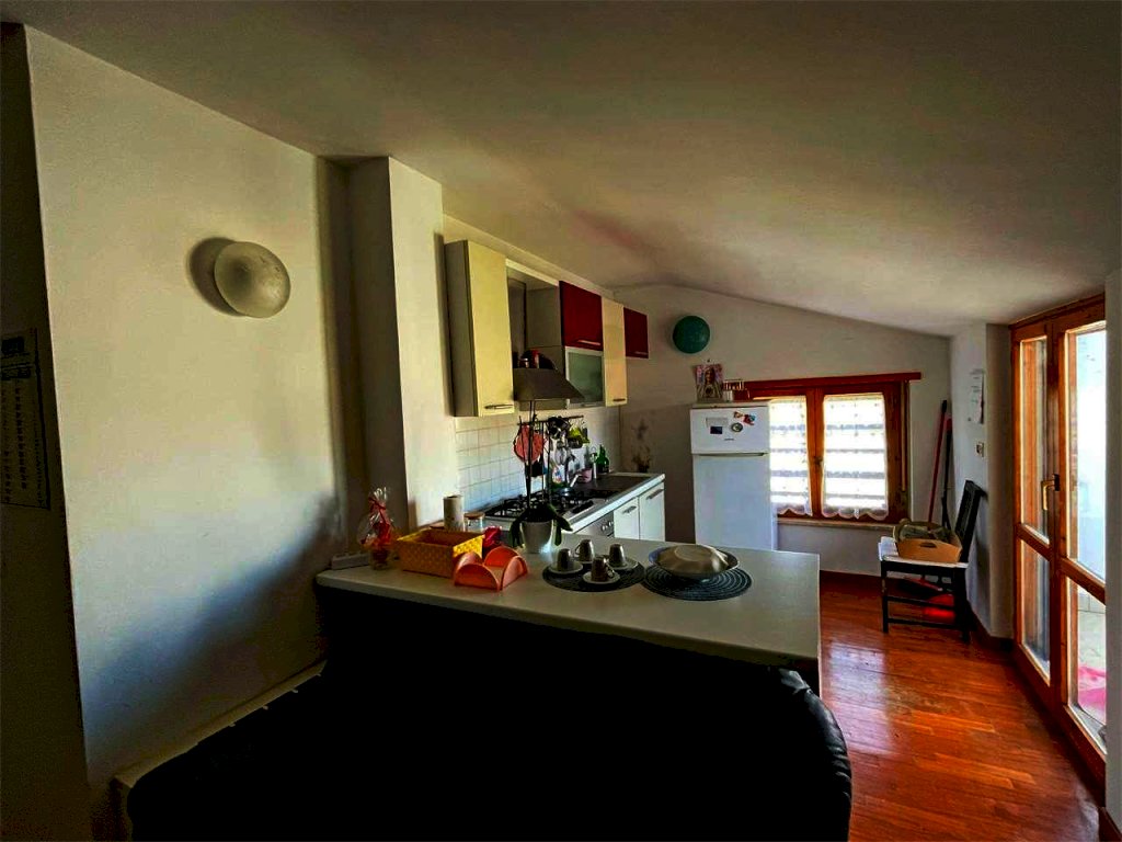 San Mariano, proponiamo in vendita in piccola palazzina, appartamento all'ultimo piano con vista panoramica e terrazzo abitabile. L'immobile è composto da un ingresso, un soggiorno con angolo cottura, una camera da letto e un bagno. Garage. La zona è residenziale e vicina ai principali servizi.