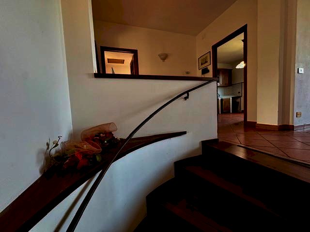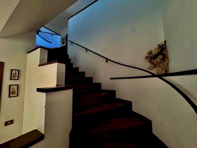 Dal portoncino si accede ad un ampio disimpegno, dove si trovano delle comodissime scale rivestite in parquet che portano al piano superiore dove si sviluppa l’appartamento.