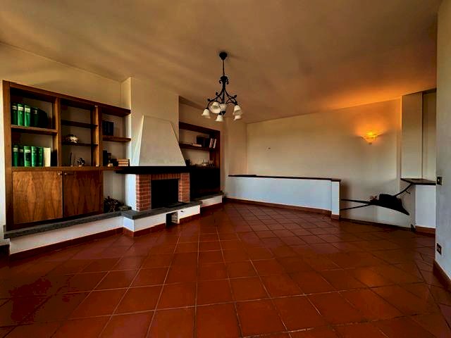Da qui, ci troviamo nell’ampio soggiorno con camino a legna, molto luminoso grazie alla finestra e alla portafinestra, dalla quale si accede al balcone con vista mozzafiato sulle colline!