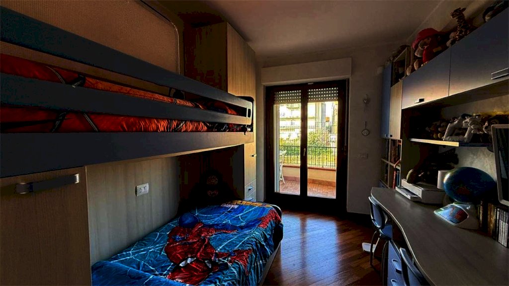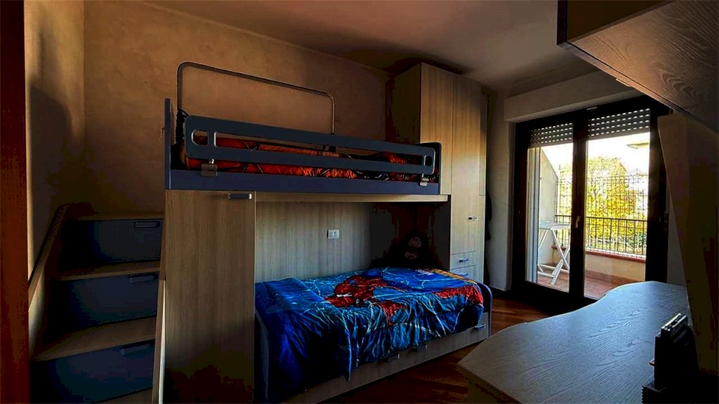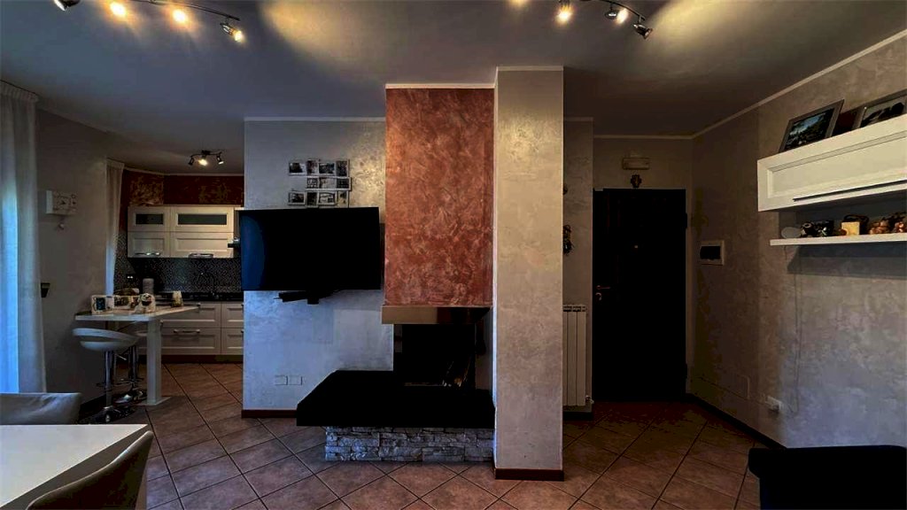 L'appartamento, della superficie commerciale complessiva di circa 90 mq è composto da un luminoso soggiorno con angolo cottura, camino e terrazzo abitabile, 1 camera da letto matrimoniale, 2 camere singole, una delle quali con balcone e 2 bagni entrambi finestrati di cui uno con vasca e l'altro con doccia.