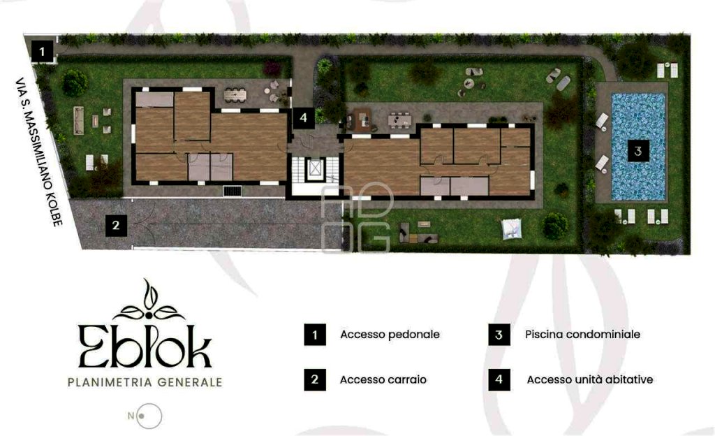 Un complesso, dotato di piscina condominiale, di 6 esclusive unità abitative caratterizzate da grandi e rigogliosi giardini privati, terrazze e portici da vivere come veri salotti all'aperto, progettato per esaltare l'incontro di innovazione e benessere. Dove gli spazi esterni sono protagonisti quanto quelli interni e l'architettura diventa lo strumento di creazione di ambienti in cui la luce naturale filtra attraverso le ampie vetrate divenendone l'elemento essenziale.