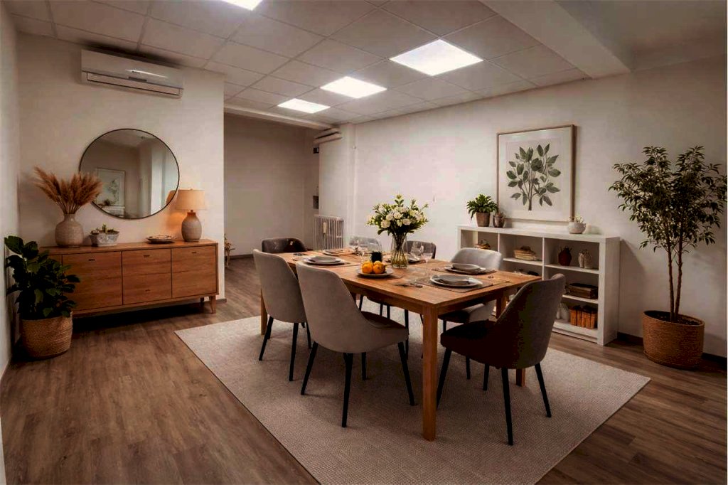 L'ufficio è agevolmente convertibile in abitazione mediante cambio di destinazione. A tal proposito sono già stati elaborati da tre progetti professionali di riqualificazione residenziale con preventivo di tutti gli interventi essenziali. In particolare si prevede la realizzazione di un ampio ingresso, una luminosa zona a giorno,due stanze di cui almeno una matrimoniale, un ampliamento del bagno, oltre naturalmente a balcone e cantina già presenti.
