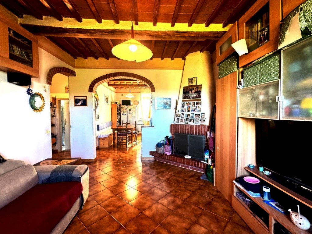 Proponiamo questo AMPIO 4 VANI in STILE TOSCANO con suggestivi soffitti con TRAVI A VISTA e PIANELLE IN COTTO,; l'appartamento, con ingresso a sole 4 unità abitative, è posto al secondo ed ultimo piano e pertanto è MOLTO LUMINOSO E AREATO, e si compone di AMBIENTI ZONA GIORNO OPEN SPACE con ZONA SOGGIORNO con immancabile CAMINO A LEGNA, CUCINA ABITABILE con zona pranzo, disimpegno, DUE GRANDI CAMERE MATRIMONIALI (una con CABINA ARMADIO), SALA DA BAGNO finestrata, oltre altro BAGNO finestrato con zona lavanderia, ed un LOCALE SOFFITTA tutto sopra l'appartamento utilissimo come RIPOSTIGLIO facilmente accessibile tramite agevole scala interna --- Al piano terra UN GRANDE RESEDE di oltre 30 MQ. ideale per almeno DUE POSTI AUTO. ---
