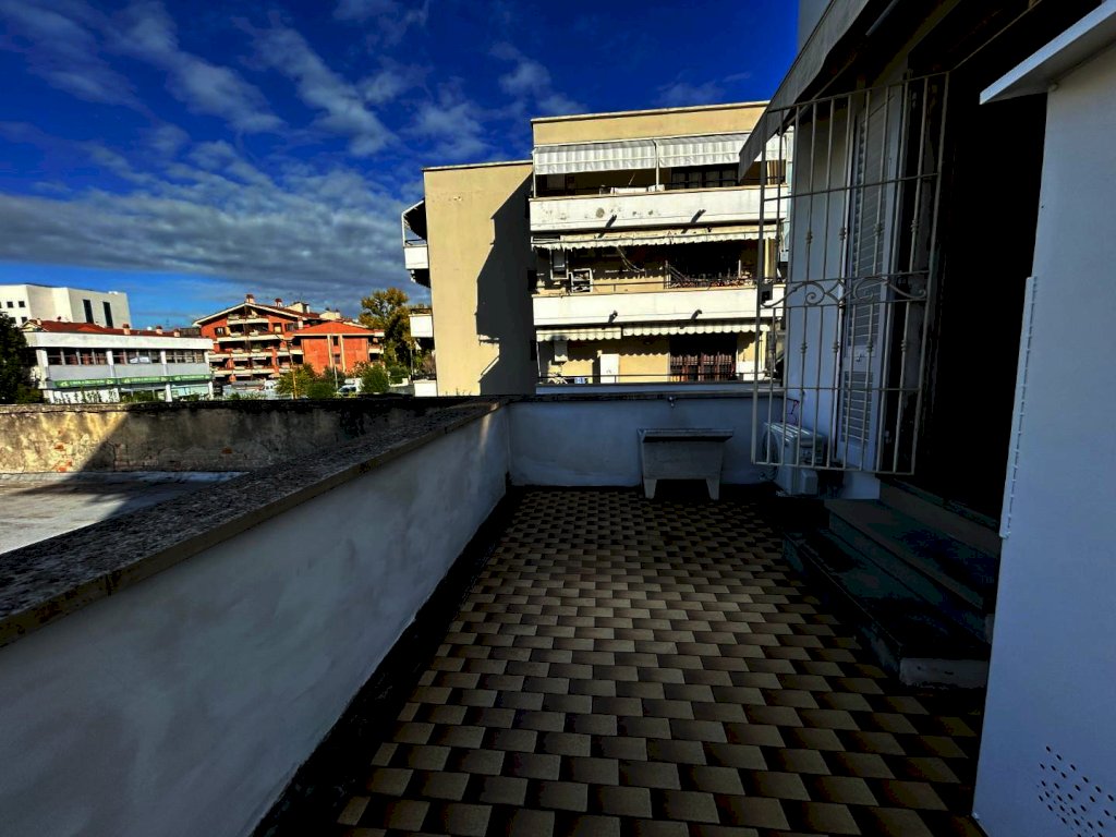 Empoli, appartamento in zona centrale, al primo piano di una casa libera su quattro lati e costituita da sole tre unità abitative. L'immobile si sviluppa al primo piano, su un unico livello, e si compone di un bel soggiorno molto luminoso, cucina separata abitabile con attigua sala da pranzo e accesso al grande terrazzo vivibile di mq. 32. Disimpegno zona notte, due camere matrimoniali di cui una molto grande e un bagno finestrato con vasca. La casa è molto luminosa, si presenta ottimamente, è tenuta molto bene e ha subito interventi di ammodernamento e manutezione nel corso degli anni. E' dotata di impianto di aria condizionata, doppi vetri, e caldaia nuova. Al piano terra, completa la proprietà un comodo giardino e nel piazzale a comune ha due posti auto assegnati.