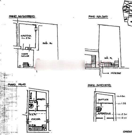 Al piano rialzato è ubicato solo l'ingresso, ove un vano scala conduce al piano primo; l'ingresso è raggiungibile dalla strada comunale percorrendo un balcone comune anche ad altre unità abitative.