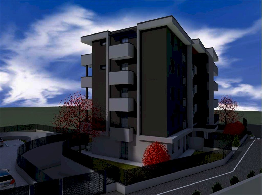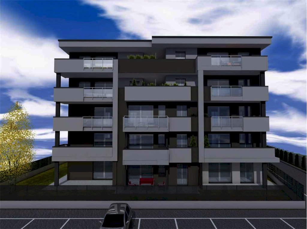 APPARTAMENTO A6 PIANO PRIMO: ingresso, soggiorno con cucina a vista e terrazzo, disimpegno notte, camera da letto matrimoniale con cabina armadio, seconda camera da letto, terza camera da letto balcone sulla zona notte, 2 bagni. Autorimessa doppia. EURO. 310.000,00.