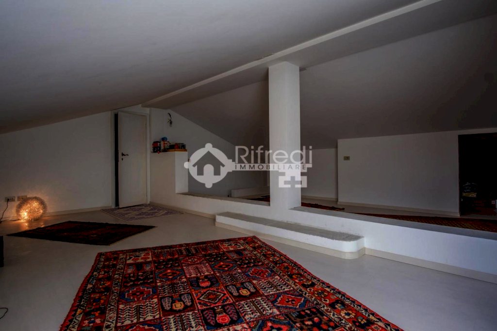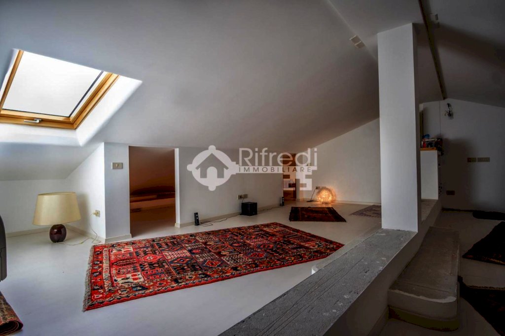 Dal salone si accede con una bellissima scala in acciaio e faggio alla mansarda di circa 60 mq. di cui 35 mq. abitabili ed il resto adibito a zona ripostiglio/lavanderia. Accessoriata di finestra velox e predisposizione per ulteriore velox.