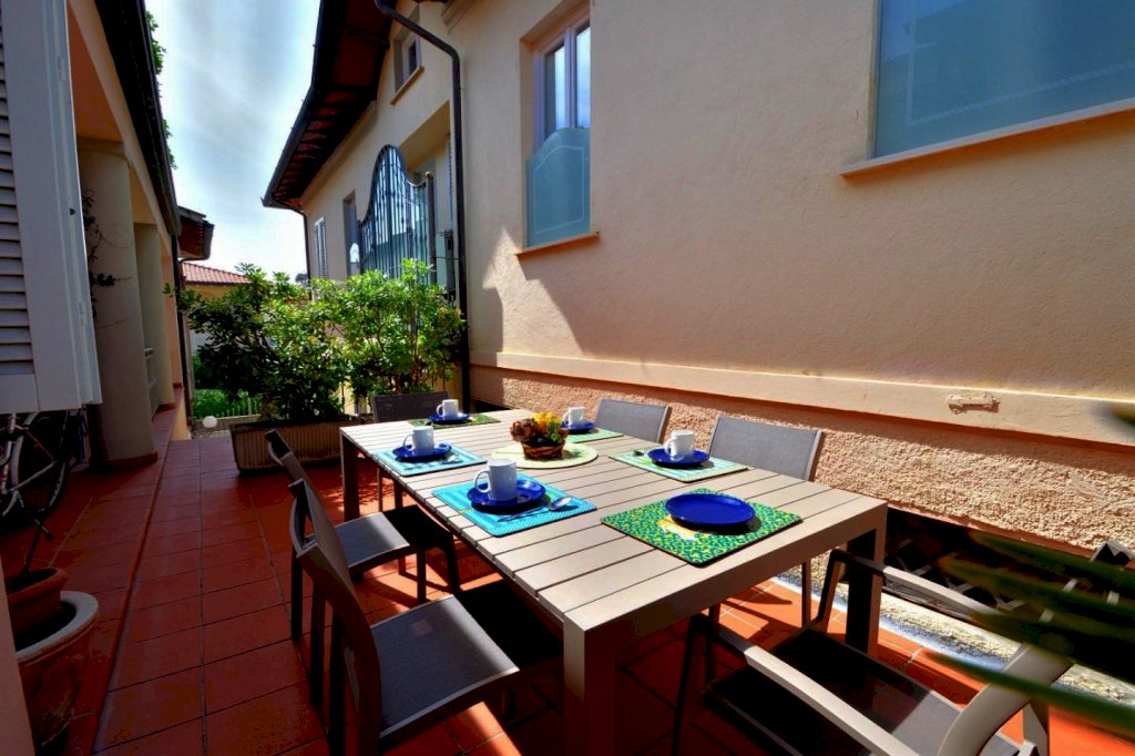 Forte dei Marmi in posizione centralissima, appartamento al primo e ultimo piano di palazzina bifamiliare in centro storico. Abitazione di circa 100 mq, distanza dal mare meno di 250 metri. Composto da: terrazza esclusiva per il soggiorno e il pranzo all'aperto, soggiorno pranzo con angolo cottura, disimpegno, due camere matrimoniali, camera doppia, bagno con vasca, bagno con doccia, piccolo ripostiglio lavanderia. Cortiletto a comune per parcheggio bici. Ottimo investimento. Ubicazione unica per posizione e tranquillitÃ