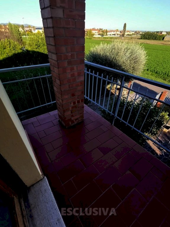 Rif. 964 - Nella prima campagna di Fucecchio, in zona comoda e molto tranquilla si vende l’intero piano primo di villetta bifamiliare molto ben tenuta con ampio spazio circostante a giardino e per accesso carrabile oltre a mille metri di terreno a continuazione. Si accede all’abitazione da un bel portico rialzato e da scale comode e spaziose che conducono all’ingresso, da cui si accede al tinello con cucinotto e ripostiglio oltre che balcone ampio con affaccio tergale, soggiorno spazioso collegato allo studio con accesso ad un grazioso terrazzino abitabile, il corridoio poi conduce nella zona notte dove intorno al disimpegno si aprono tre belle camere di cui due matrimoniali ampie ed una doppia oltre al bagno. L’intero immobile ha finiture dell’epoca di costruzione ma è molto ben tenuto e presenta infissi in legno con doppio vetro, inoltre gli impianti sono tutti autonomi e la caldaia e nuova. Completa la proprietà la soffitta praticabile, con accesso da continuazione delle scale e una taverna/cantina al piano seminterrato, anch’essa collegata dalle scale, di dimensioni totali pari a circa 66mq, inoltre sull’esterno vi è un garage di 29mq e 4 capanni per una superficie totale di 45mq. Immobile solido e spazioso con il grande pregio di una ottima posizione, adatto a chi cerca spazi ampi dentro e fuori casa e una collocazione con il verde a portata di mano.