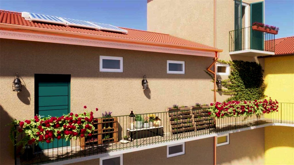 - Piano terra + primo piano con lungo balcone