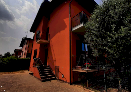 Appartamento al piano primo di villetta bifamigliare di due piani fuori terra oltre seminterrato con area esterna esclusiva e accesso indipendente, formato da sala, cucina, tre camere da letto e bagno, al piano terra, locale lavanderia e ripostiglio al piano interrato. Magazzini/ deposito di 14 e 24 metri quadri.