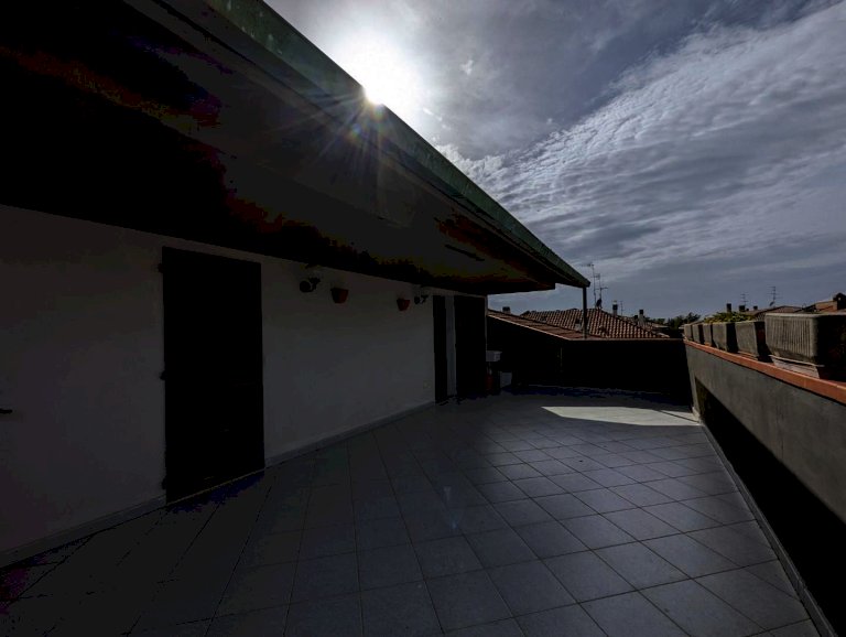 L’immobile ha una superficie di ca. 200 mq ed è composto da due soggiorni, quattro camere da letto, una cucina abitabile e tre bagni con finestra. Ampie terrazze perimetrali di ca. 80 mq complessivi circondano tutta la superficie dell’appartamento. Al secondo piano è presente una mansarda di ca. 50 mq con un’altra grande terrazza di altrettanti mq. Completa la proprietà un garage di 20 mq al piano seminterrato.