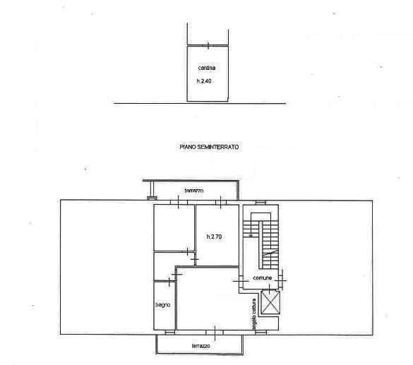 Al piano seminterrato con accesso a comune da rampa carrabile gare di circa 28me e piccola cantinetta di circa dieci.