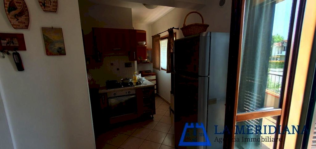 Composto da: ingresso da scala a comune o ascensore, ampio soggiorno con terrazza, cucinotto, disimpegno, camera matrimoniale e cameretta con balcone, bagno finestrato con vasca.