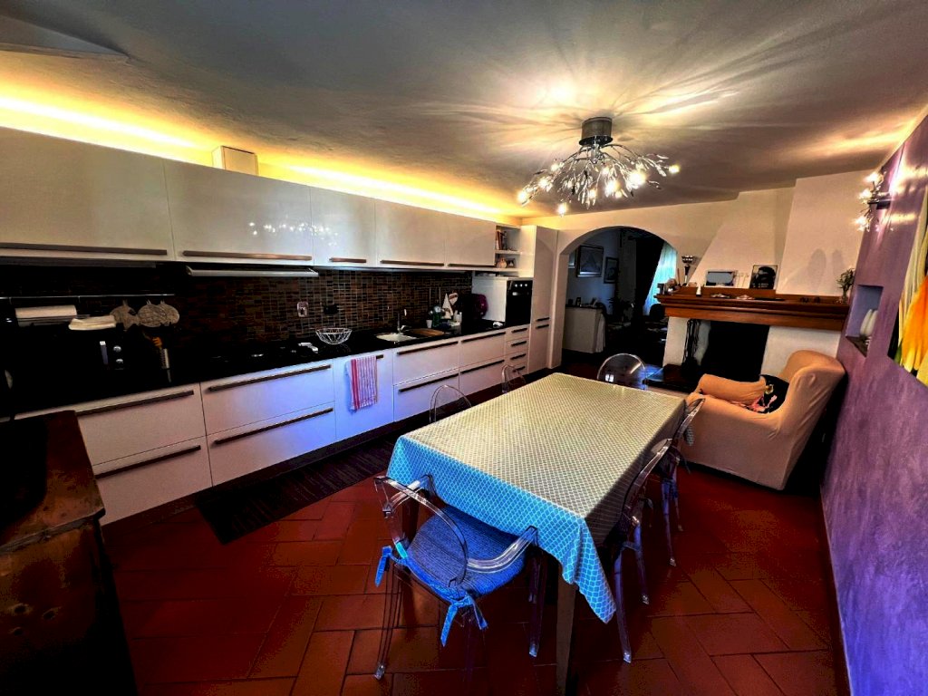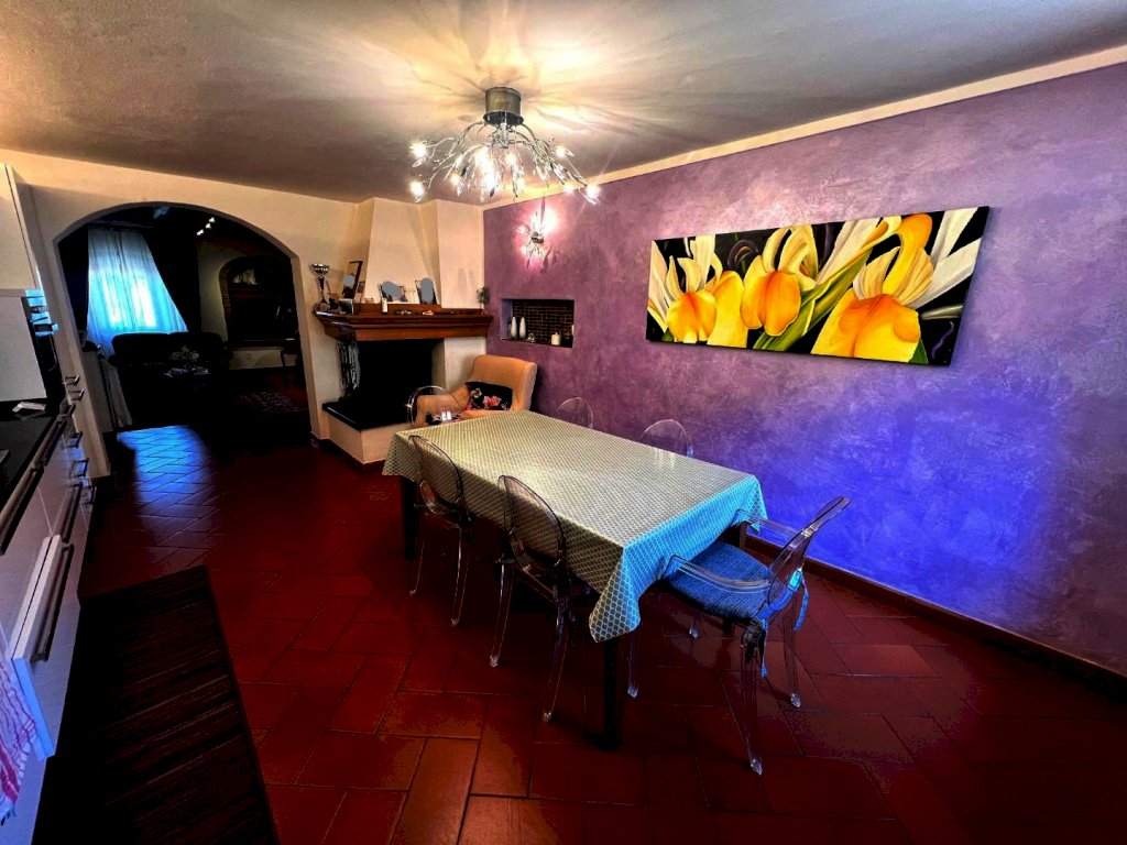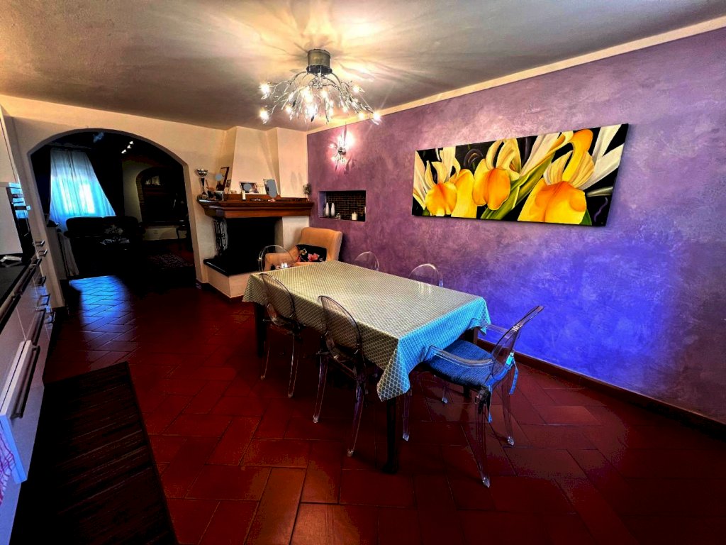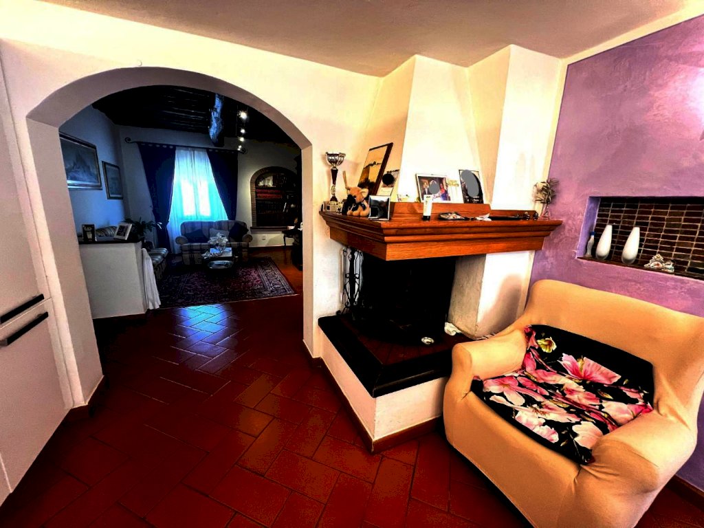 ingresso in ampio soggiorno, ampissima cucina abitabile con camino, 2 camere matrimoniali (di cui una grandissima), 2 bagni, OLTRE ripostiglio .