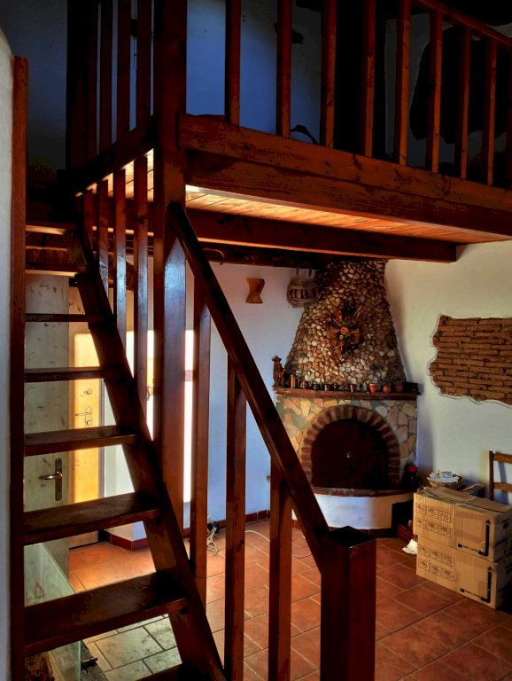 Soggiorno, cucinotto realizzato in muratura , bel caminetto rivestito in pietra, ripostiglio e bagno .