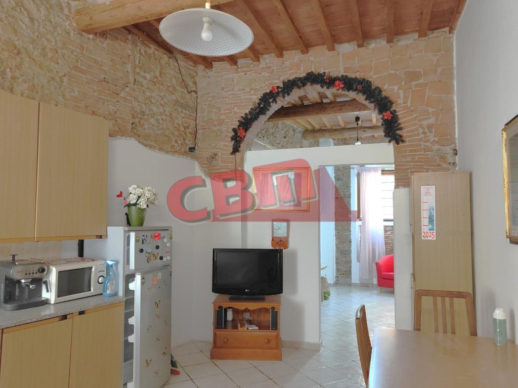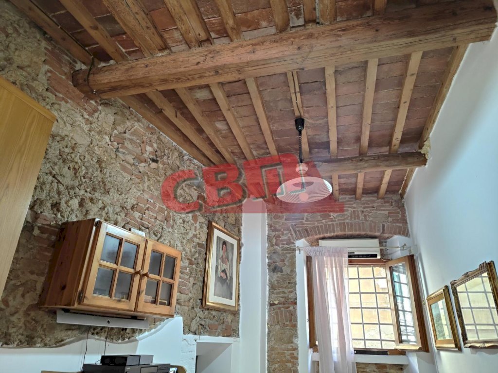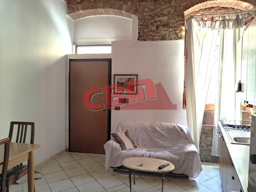 L'abitazione è composta da un soggiorno con zona cottura a vista, ampio studio (o ulteriore soggiorno arredabile anche con divano letto) separato da un bell'arco di mattoni, disimpegno dal quale si acceda alla camera e al bagno con finestra e doccia.