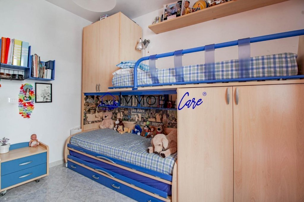 Il disimpegno notte distribuisce gli spazi verso due camere: una matrimoniale e una media, oltre al bagno finestrato con box doccia. A completare la funzionalità della casa troviamo due pratici ripostigli, di cui uno attrezzato come zona lavanderia.