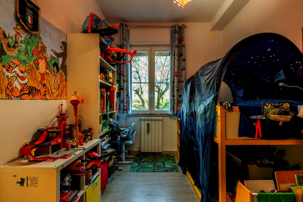 Dal giardino si accede all'appartamento mediante un comodo spazio verandato che accompagna alla cucina abitabile. l'appartamento è altresì dotato di spazioso soggiorno suddiviso in angolo relax e zona pranzo con grande finestra vetrata di affaccio sul verde e su locale dotato di pergola bioclimatica, attualmente utilizzato come zona ufficio/lavoro con accesso esclusivo dal giardino.